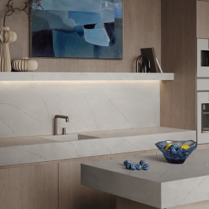 Calacatta Solara Gold, güneşin altın ışınlarının taş üzerinde bıraktığı ince bir imzadır. Duru beyaz zeminin üzerinde süzülen altın damarlar, sabahın ilk ışıklarını yakalayıp mekânınıza taşır. Sade ama iddialı, zamansız ama modern bir estetik sunar. Her bir hat, iç mekânlarda sıcaklık ve sofistike bir çekicilik yaratır. Mutfak tezgahında sohbetlerin kalbine dönüşür, banyo tezgahında ise ışıltılı bir huzurun sahnesi olur. Ada ünitelerinde altın çizgileriyle zarafeti vurgular, duvar kaplamalarında ise mekânı adeta bir sanat galerisine dönüştürür.